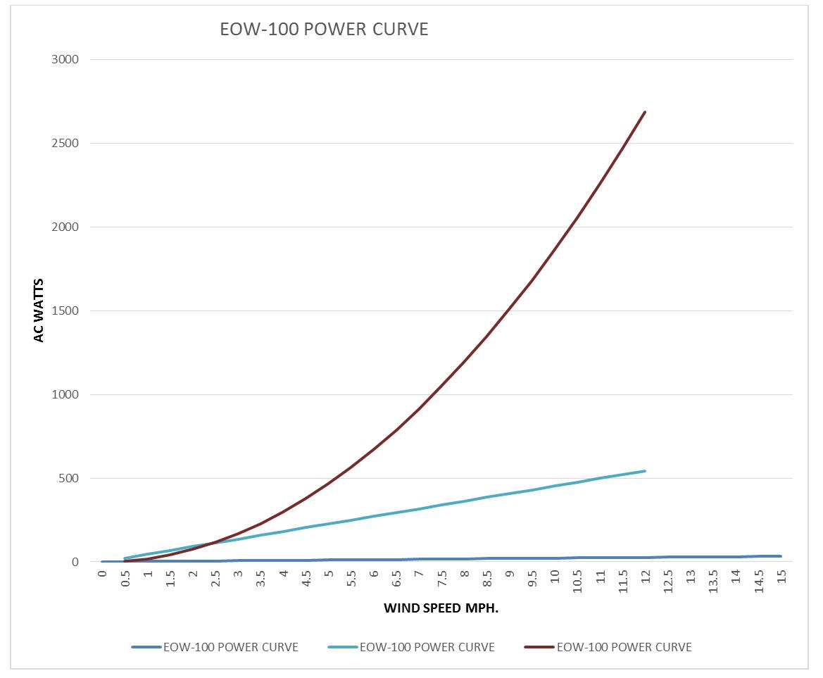 Below is our power curve data. Since every location will be different, we optimized the data to show power generation based on Wind speed, torque and Blade RPM, We recommend a survey of the average winds at your location to determine average power generation. To find out average winds speed and direction in your area please see our links below.